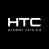 A tall electrical transmission tower with multiple power lines extending from it, set against a cloudy sky, near a construction site with a white van labeled HTC Hembry Tate Co.